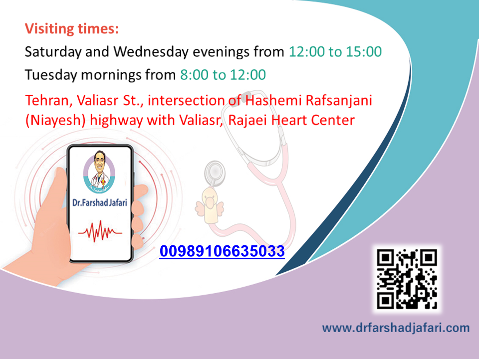 Dr. Farshad Jafari’s in-person visit is performed at Shahid Rajaei Heart Hospital in Tehran (Iran).